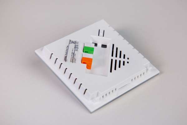 The Touch Pure switch is an elegant, frameless touch switch with a high-quality 3D printed high-quality glass front. From the switch, you can control lighting, shading, multiroom audio and other central functions – all with just a gentle touch on the capacitive touchpoints.
